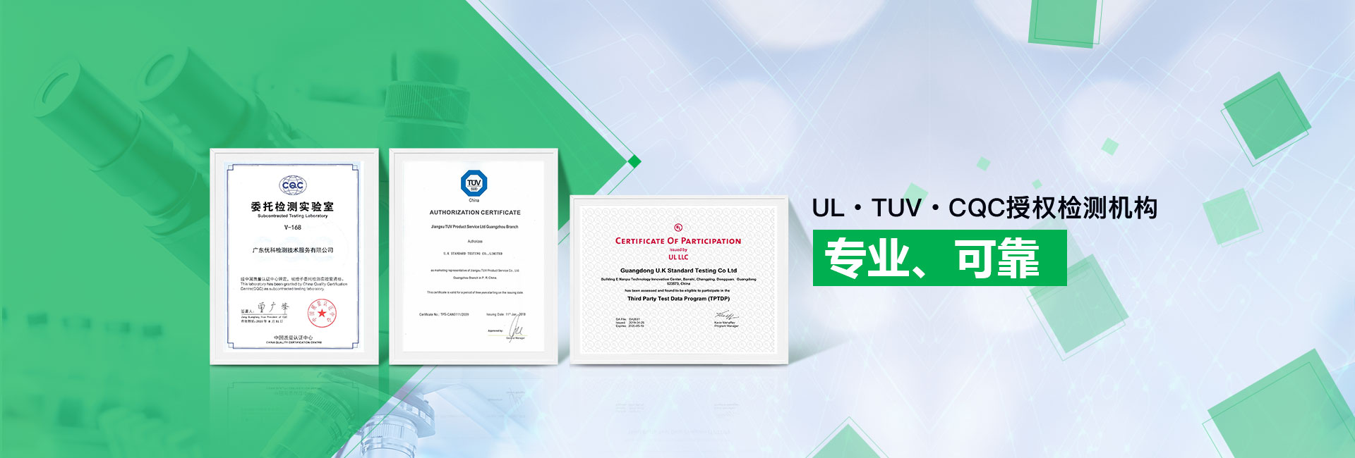 廣東優科檢測認證有限公司(簡稱:UKK)成?于2007年,是國內專業的汽車整車及零部件、電子元器件第三方檢測實驗室,國家級中小企業公共(技術)服務示范平臺,獲得了國家?新技術企業、廣東省專精特新中小企業、市級工程技術研發中心等榮譽稱號。 More